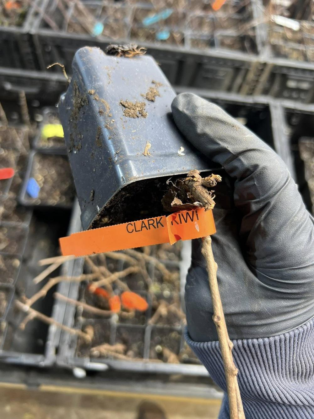 Clark is a male hardy kiwiberry (Actinidia arguta) selected to produce strong pollen. It does not produce fruit, but it is essential if you want female kiwiberry vines to set a heavy crop.
