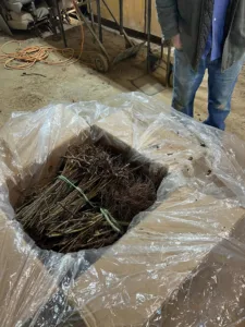 We have various varieties of bare root blackberry plants for sale at any given time. It’s always best to contact us to get an idea of which varieties we have and what we have coming soon. Our blackberries come from various properties in Arkansas, Wisconsin, and Missouri. We always have stuff coming and going. Our canes are typically around 2-4 years old and freshly dug around fall time into early Winter. They are then stored in walk-in coolers where they are kept in a dormant state.